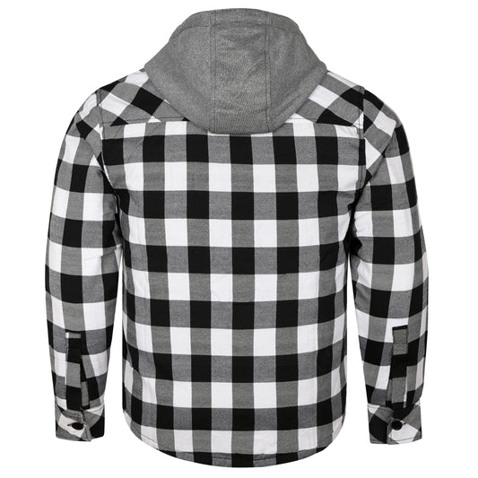 White & Black Long Sleeves Flannel Shirt with Hoodie